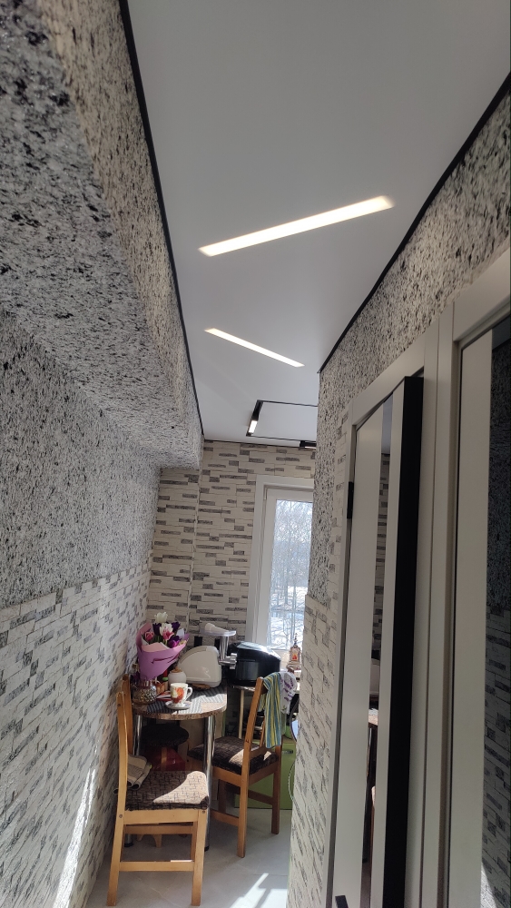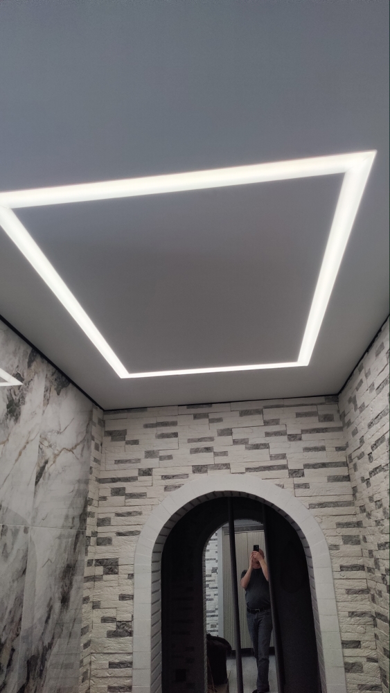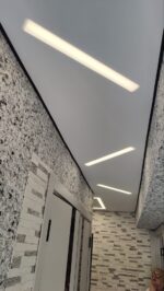 Теневые натяжные потолки создают эффект «плавающего» потолка, где края полотна скрыты в специальном профиле. В частности, это позволяет создать гладкую, аккуратную поверхность без видимых швов. Таким образом, Такой потолок визуально увеличивает пространство, придавая ему легкость и глубину. Он отлично подходит для современных интерьеров и гармонично смотрится как в жилых, так и в коммерческих помещениях.